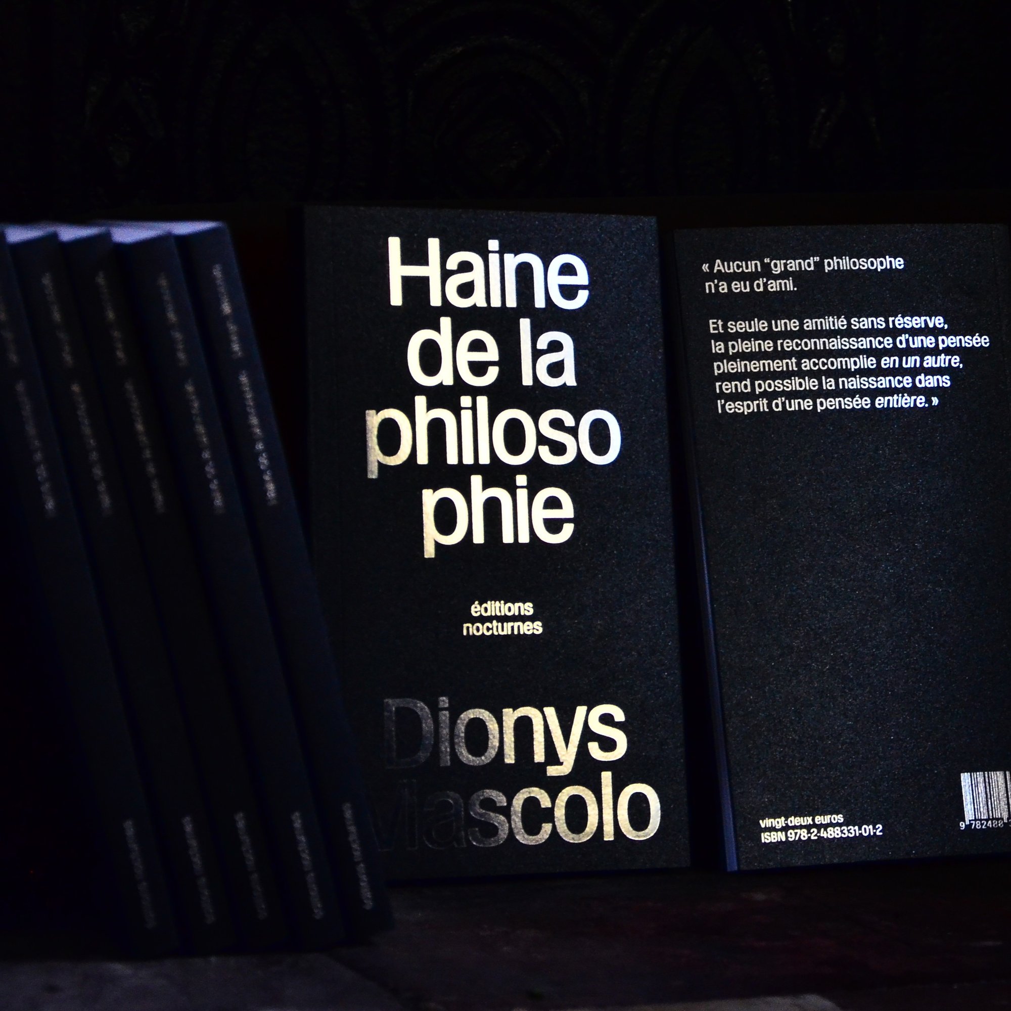 Haine de la philosophie est un livre qui dénote dans l'oeuvre de Dionys Mascolo. Lui qui a peu écrit, s'attaque, au crépuscule de sa vie, à un domaine qu'il aura côtoyé tout au long de son parcours mais dans lequel il ne se sera jamais reconnu : la philosophie. Martin Heidegger sert de prétexte au livre car en passant par la critique d'un de ses plus éminents représentants, c'est le domaine philosophique dans son ensemble qui est visé. De là, Mascolo déploie une proposition éthique à même de bousculer la philosophie : une pensée par l'amitié. Car si « aucun grand philosophe n'a eu d'ami [pourtant] seule une amitié sans réserve, rend possible la naissance dans l'esprit d'une pensée entière. »